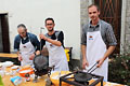 Le mois d'août est toujours propice pour faire de belles randonnées en montagne à Arola. Cette année encore, les frères Cusa, Roberto et Enrico, Barbara Rossetti et son mari Daniele ont organisé la journée à " Piziniguign ". Après 2 h de marche, la croix de Piziniguign apparait sur ce promontoire à 1100m d'altitude qui embrasse tout le lac d'Orta, et à l'horizon les autres lacs. Une bonne odeur de cuisine nous attend, la polenta et les saucisses cuisent doucement sur les feux de bois. Il est temps de passer à table !! .... en musique car Enrico joue de l'accordéon. Un franc succés encore cette année avec 134 participants. |