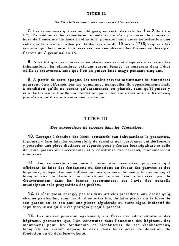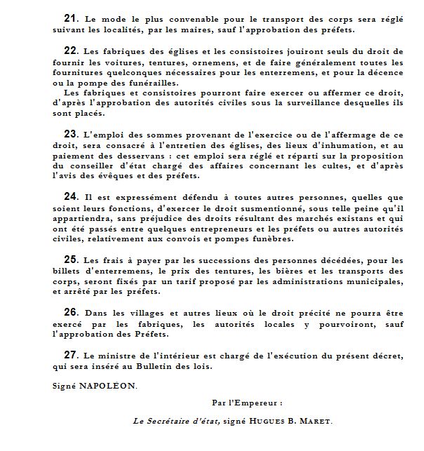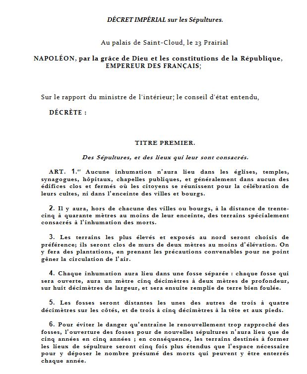 DECRET IMPERIAL sur les SEPULTURES
