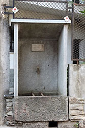 Chaque vasque avait une porte fermée par un cadenas que l'on ouvrait quand il s'agissait de les nettoyer, c'était le travail du "Servant Communal"(3) qui devait le faire au moins une fois par semaine. L'eau de la fontaine venait de la "Roggia", qui conduit l'eau au village, au moyen d'un canal en pierre de 4 Oncie (0,24m) muni d'une trappe afin de moduler le prélèvement de l'eau selon les besoins ou les circonstances du village. (1) - Oncia: unité de longueur qui vaut dans le Piémont 4.958 cm (2) - 1 braccio=12 oncie=59,5 cm (3) - Le Garde champêtre |
